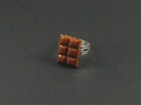 Pour les amateurs de chocolat, discrète bague gourmande réalisée artisanalement avec de l'argile polymère. Mini tablette de chocolat solidement fixée sur un support de bague réglable.