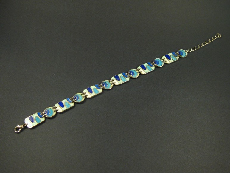 Entièrement métallique, bracelet constitué de pastilles, rondes et rectangulaires, connectées entre elles par de petits anneaux.